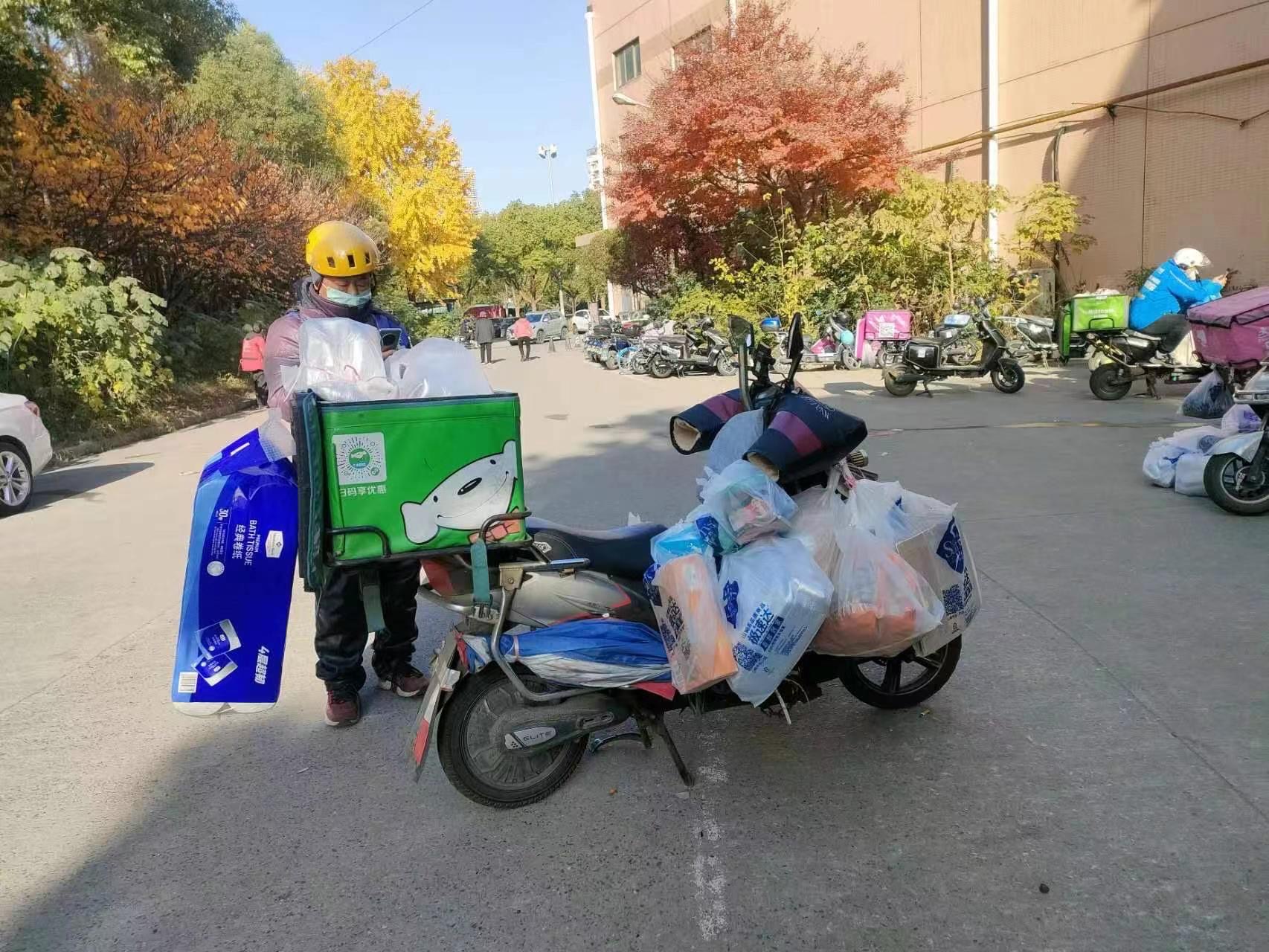 12月15日上午9時,臨沂北路沃爾瑪超市。周邊到處都有快遞員忙碌的身影。因近期居家及不想外出的市民較多,網絡訂單一直爆滿。