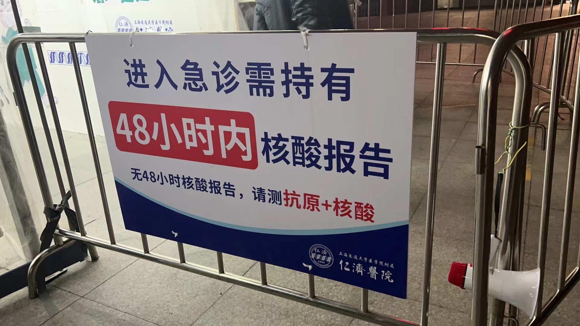 15日晚19時,仁濟醫院保安人員表示:進入醫院必須持三天內核酸綠碼;如果沒有,則需現場做抗原,陽性不可直接進入門急診,需要去發熱門診。急診需要48小時核酸報告,如無,現場做抗原即可。發熱門診患者仍然不多,大多為老年患者,與昨日情況類似。