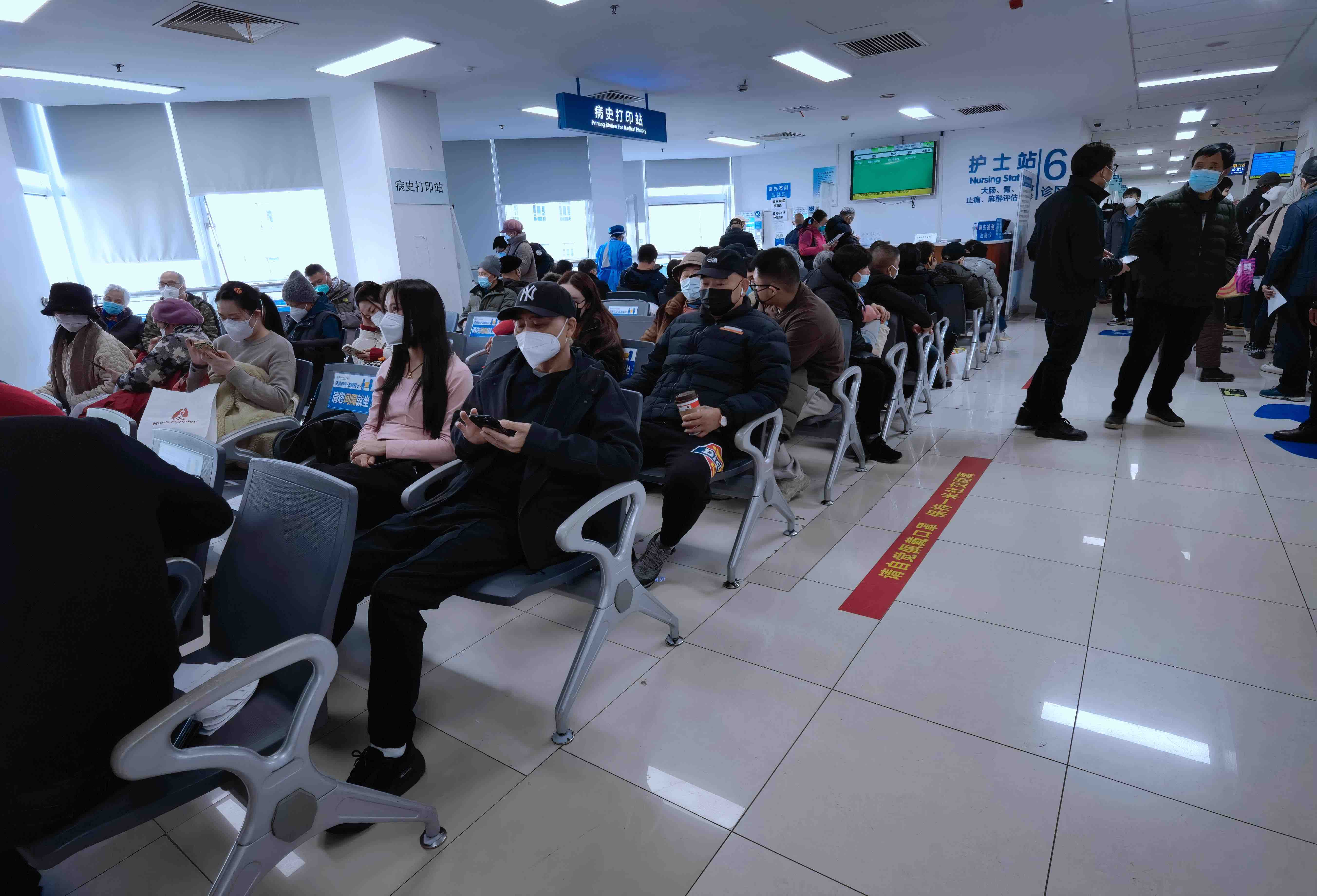 上海腫瘤醫院門診大樓內,許多患者在候診。