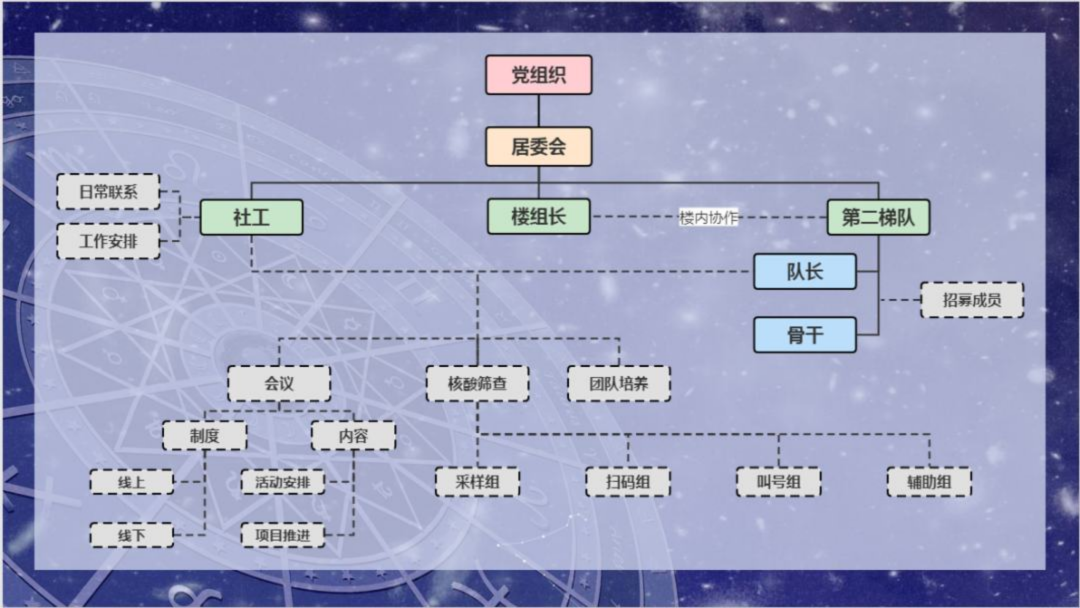 為了在短時間內培養出一支專業的抗疫隊伍,他和其他四名居民骨干組成臨時帶教團,每兩人一班、一天兩班的輪崗親身示范培訓。僅僅數日,一支年齡在18至50歲、共127人的青年志愿者隊伍在圣都匯迅速集結,與社區治理“三駕馬車”、社區黨員、樓組長等力量一起,為打贏大上海保衛戰并肩作戰。