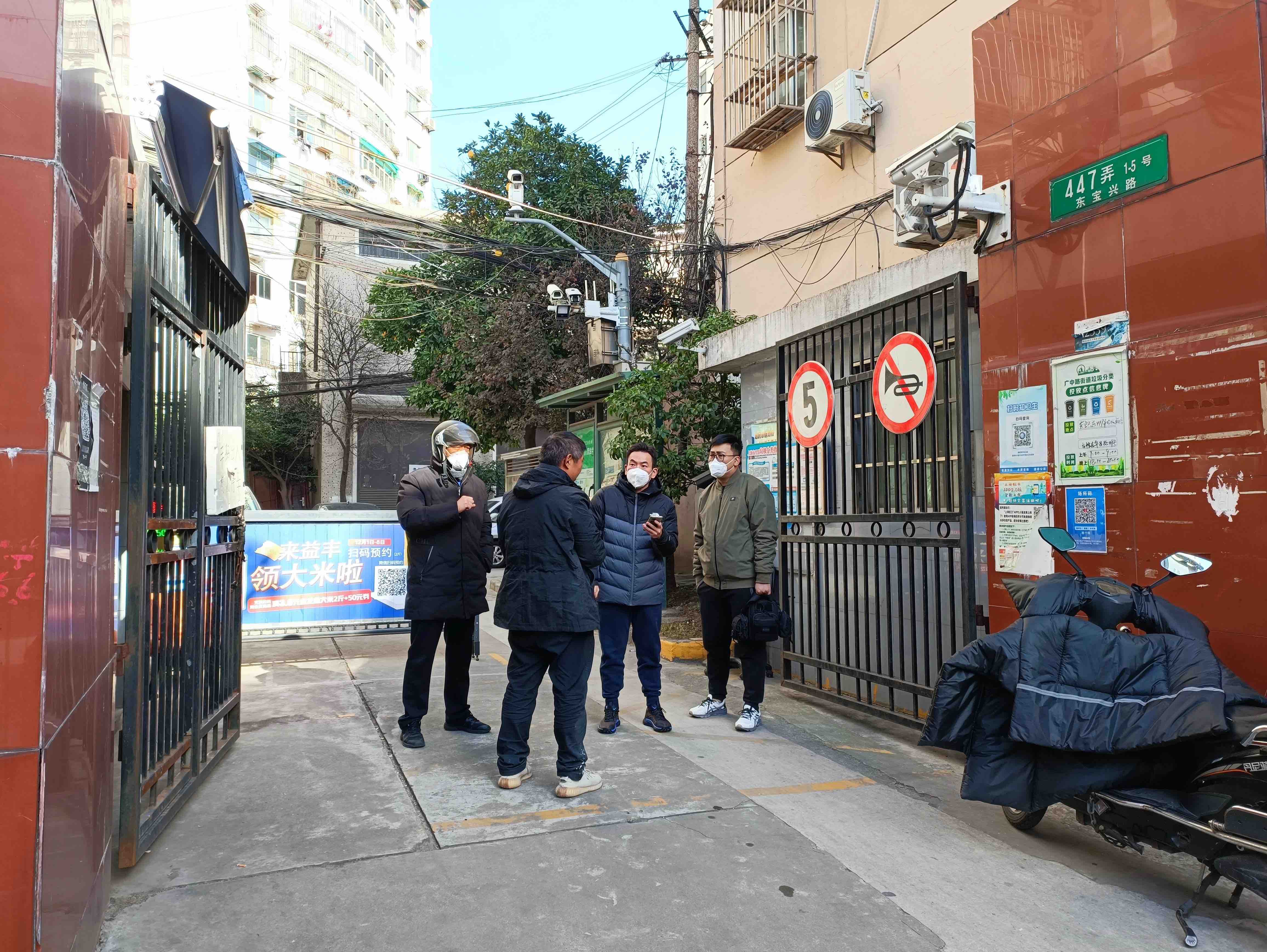 一早,王佳駿就忙開了。先是在居委會調解室與居民、物業協商電梯維修的解決方案,隨后與物業經理來到雙寶小區477弄的邊門,討論門禁安裝方案的進展,順路又去了一戶居民家中,了解老人疫苗接種的意向。