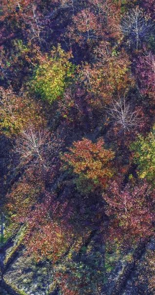 羅涇鎮塘灣村公益林位于塘灣村內,初冬一至,其中的七葉樹、欒樹、楓香等紛紛換上新衣,用金黃與火紅中繪出一幅美麗畫卷。