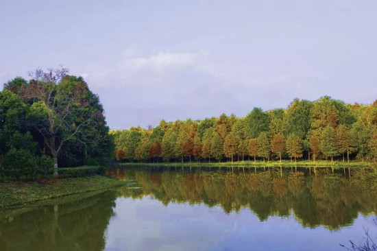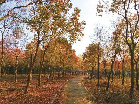 合慶鎮朝陽村開放休閑林地位于浦東新區合慶鎮,林地內步道、服務設施完善。初冬時節,無患子、烏桕、銀杏等都換了新裝,層林盡染,盡顯秀麗風光。
