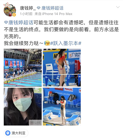 雖然遺憾無緣領獎臺,但唐錢婷仍舊以29秒22的成績第三次打破亞洲紀錄。賽后,唐錢婷表示,比賽雖然有遺憾,但前方仍舊是光亮的,她將會繼續努力!