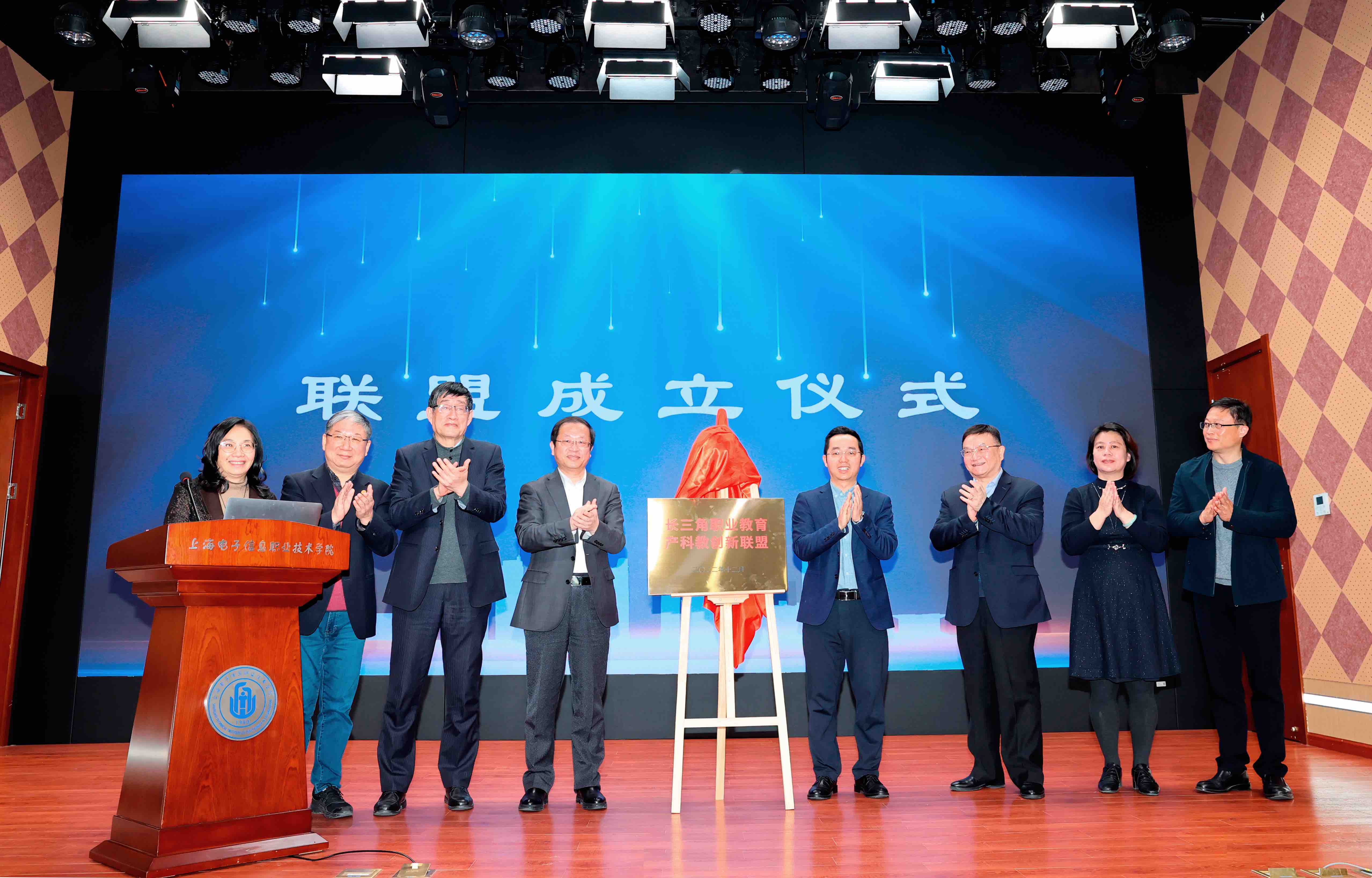 現場專家、領導共同為長三角職業教育產科教創新聯盟揭牌。上海市職業教育協會會長馬樹超宣讀了《上海電子信息職業技術學院專家咨詢委員會名單》。