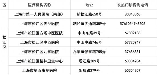 原標題:上海市二級以上醫療機構發熱門診一覽