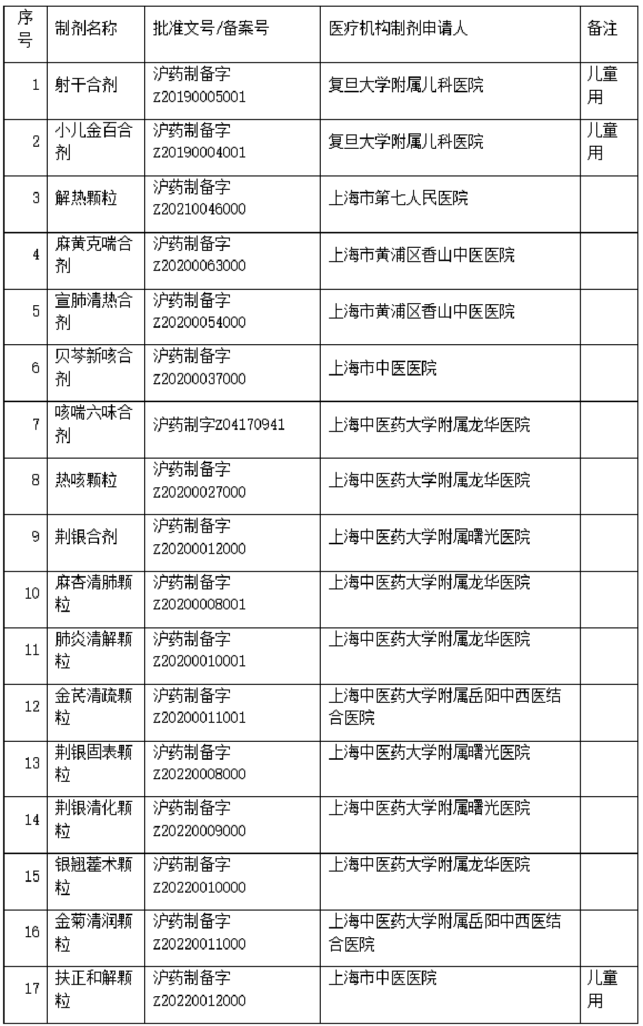 解放日報·上觀新聞記者查看上海市藥監局公布的《實施加快調劑使用審批程序的醫療機構制劑清單》,發現共有復旦大學附屬兒科醫院、上海市第七人民醫院、上海市黃浦區香山中醫醫院、上海市中醫醫院、上海中醫藥大學附屬龍華醫院、上海中醫藥大學附屬曙光醫院、上海中醫藥大學附屬岳陽中西醫結合醫院等7家醫療機構的17種制劑。