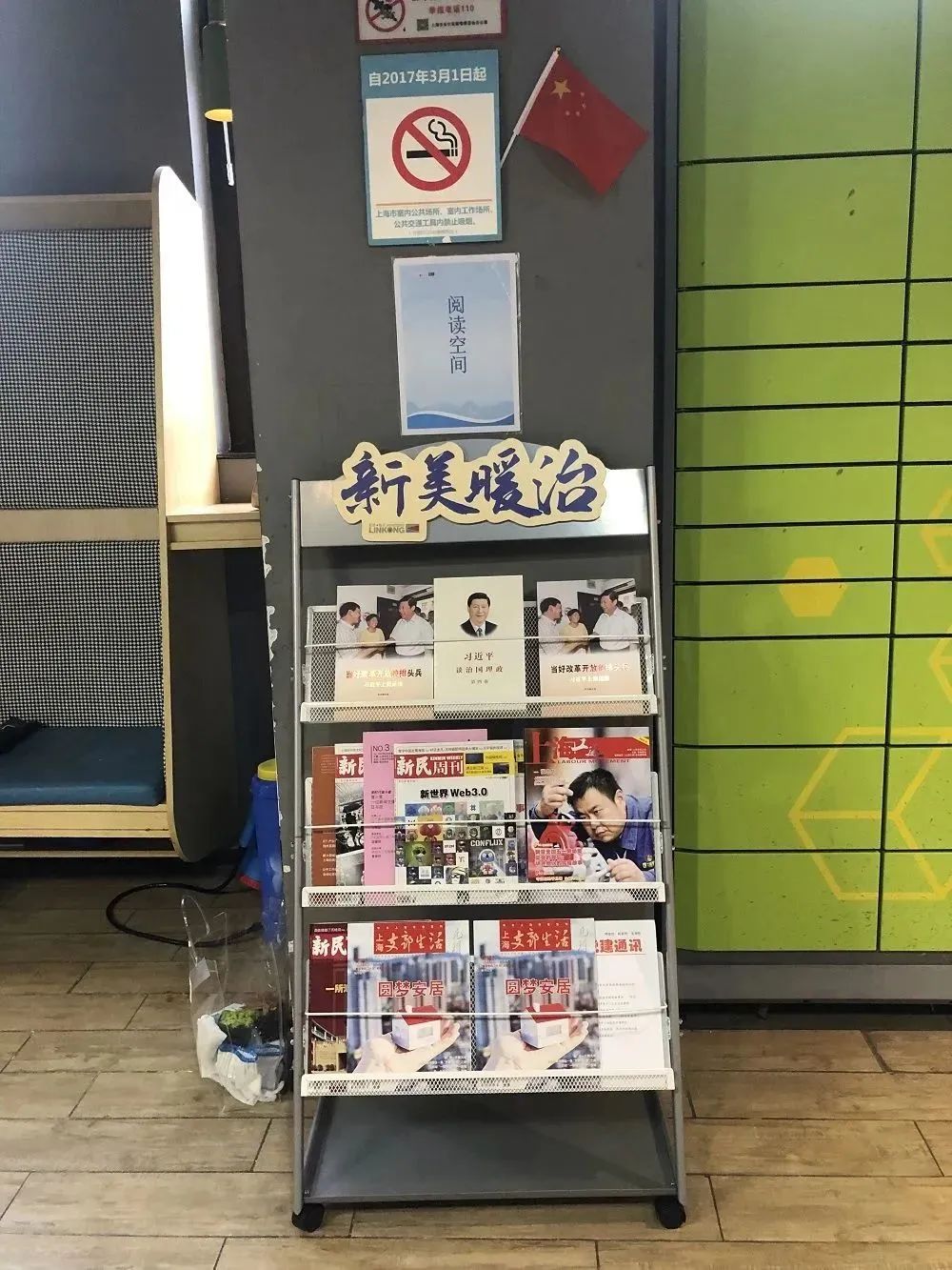 首先是公寓的前臺,從“住宿公寓”變身為“小哥之家”,“小哥”擁有了屬于自己的溫馨“客廳”。整片區域分為活動組織區、風采展示區、談心談話區、學習讀書角等,書報架、健身用品、休閑桌椅、裝飾掛畫一應俱全。設置了黨建園地,可以開展政策宣傳、困難幫扶、學習閱讀等服務;設立共享區,送去方便食物、防疫用品等,“小哥”可在急需時領用。