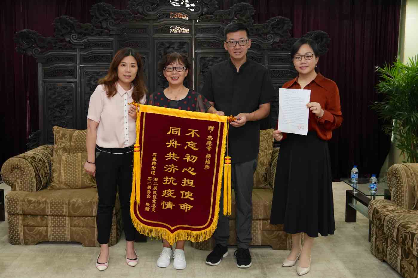 蘇雅芳代表石二居民區黨總支、居委會為楊維珍送錦旗(資料圖)