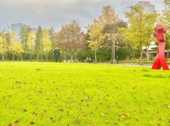 新虹橋中心花園是絕對值得去打卡的“天然氧吧”,大草坪、竹林、溪流以及園內1萬平方米的人工湖等風景都是都市人尋找野趣、遛娃、散心的好去處。