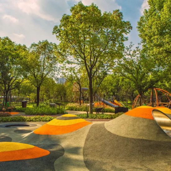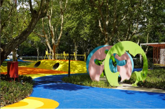 塑膠場地由藍、黃、橙三種亮麗的色彩構成,形成森之環、水之環、健身環,激發創造力,開啟一切可能性,編織屬于每個人的情趣。