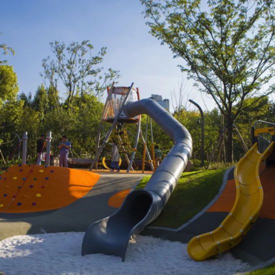 這個沉浸式的“兒童友好型”樂園占地約8700平方米,內有傳聲筒、秋千、滑梯、沙坑等各種好玩的互動娛樂設施。