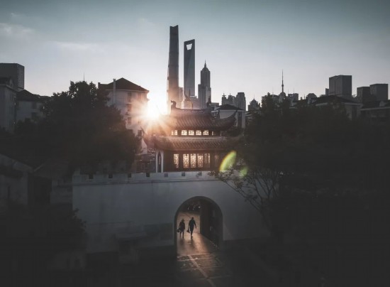 古色古香的城樓,上方飛檐翹角,很有中國風的韻味。在這里還能將陸家嘴三件套、上海中心、環球金融中心和金茂大廈及城樓放在一個取景框里,實現古今同框,尤其日落時分拍攝更加出片。