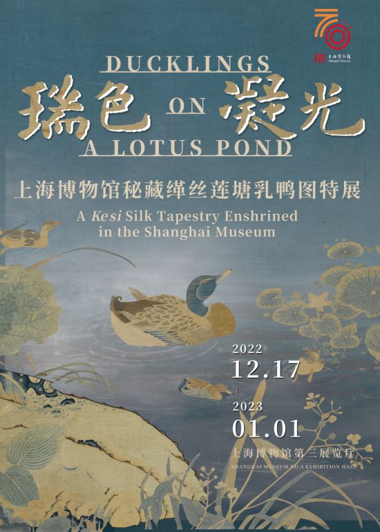 《蓮塘乳鴨圖》為朱克柔所緙唯一一件巨幅傳世作品,是極為稀見的中華瑰寶。為慶祝建館七十周年,上海博物館將再次打開秘藏數十載的緙絲瑰寶,為民所共賞,活化館藏珍貴文物資源,彰顯中華緙絲璀璨藝術,以優秀的傳統文化滋養人民群眾。