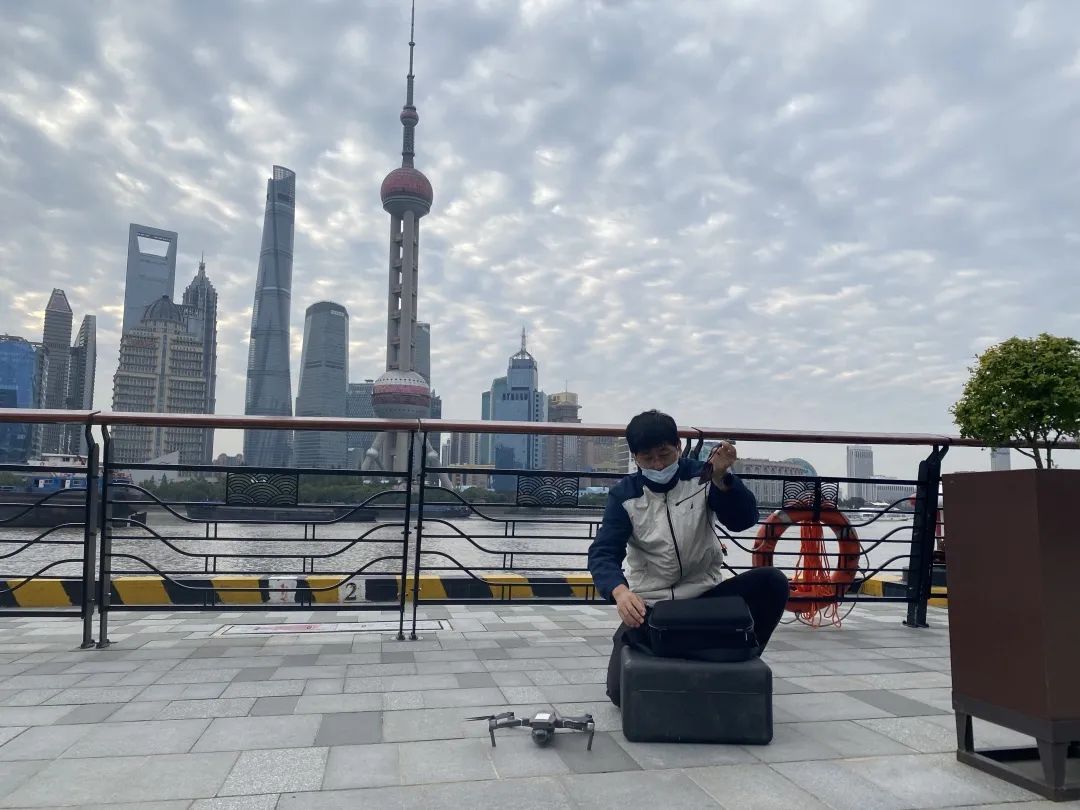 近日,在虹口區北外灘國客中心濱江岸線附近的河道上空,一架無人機正在進行排污口排查工作,工作人員可直接通過顯示屏看到無人機傳回的實時畫面。