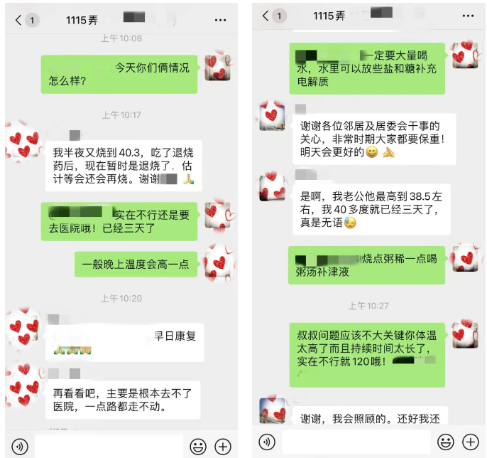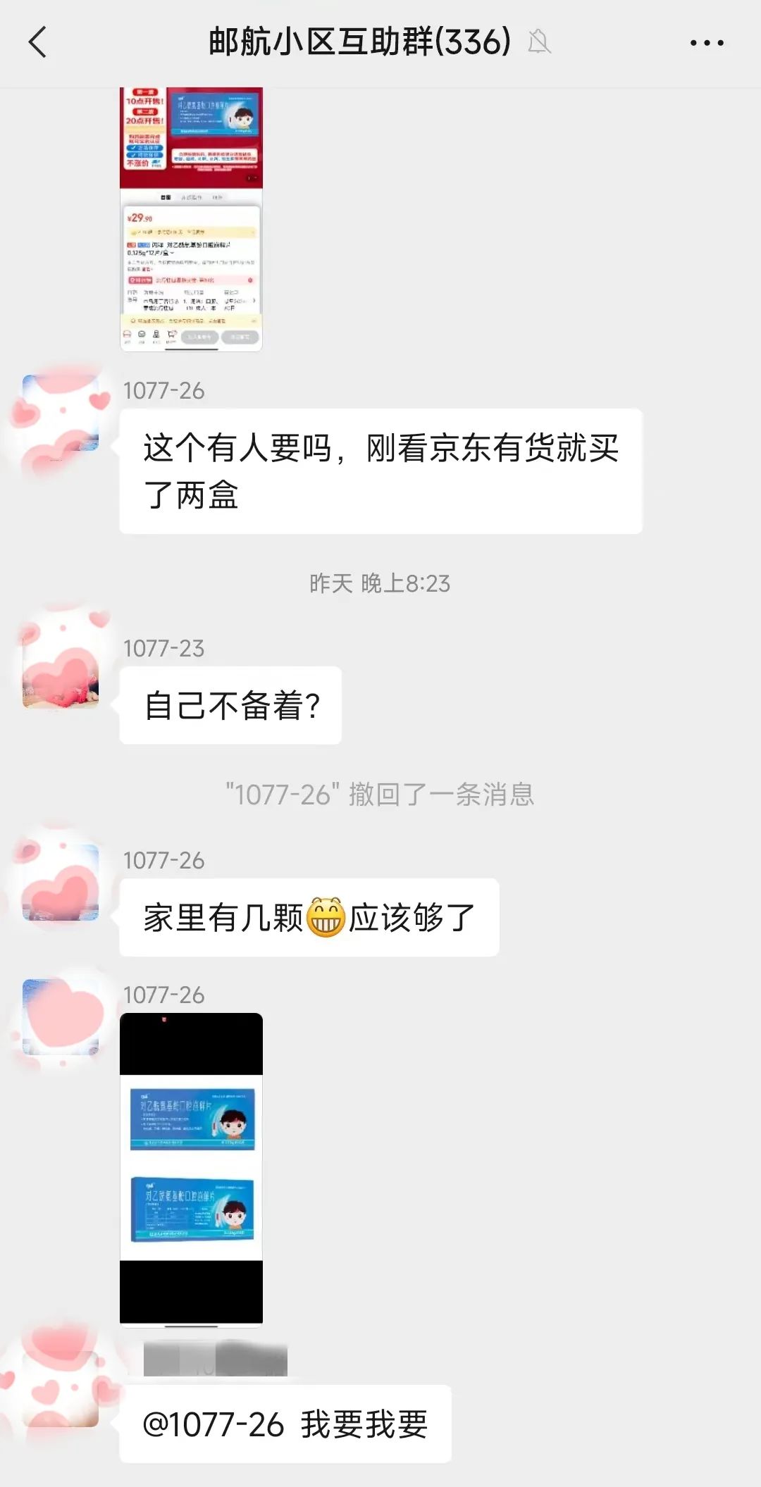 居民區多措并舉,守牢為民服務底線,而來自居民之間的善意也在開始小區互助群里流淌,居民們自發在群中共享應急藥品,這份鄰里守望的“接力賽”也讓真情不斷傳遞。
