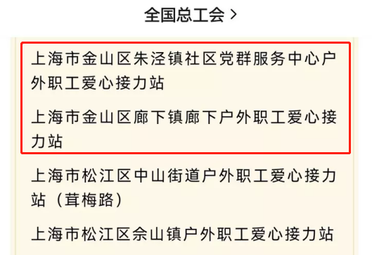 據了解,自2017年以來,金山區大力推廣戶外職工愛心接力站,全區目前共有50家戶外職工愛心接力站站點,有需要的戶外職工群體,可以通過“申工社”公眾號,查找自己附近的戶外職工愛心接力站。