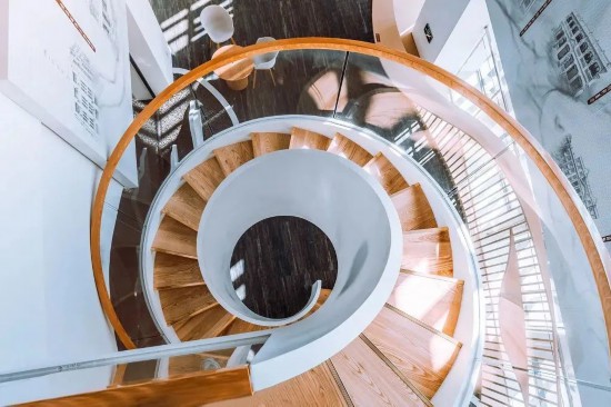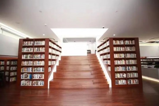 中庭挑空區用藝術旋轉樓梯將8、9樓連接起來,便于讀者在兩層空間內自由活動。