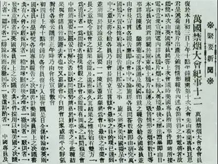《申報》刊登的關于萬國禁煙會召開情況的報道