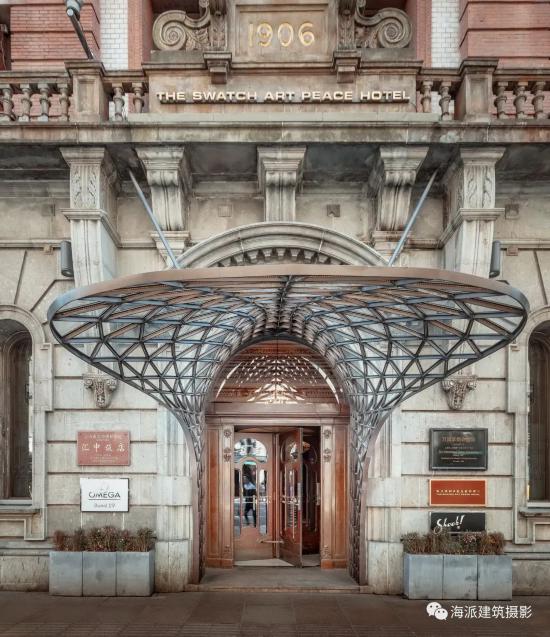 和平飯店藝術中心為文藝復興風格,外墻底層為石砌,以上為白色面磚,樓層間隔線腳,窗口和上部兩層窗間為紅磚鑲砌,紅白相間,引人矚目。