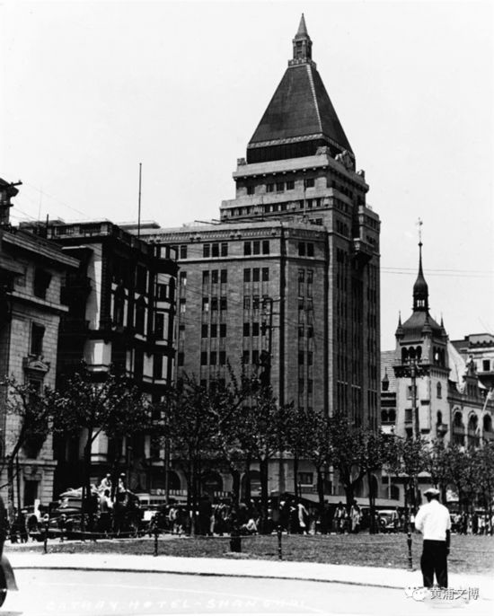 照片為30年代初拍攝,左側為匯中飯店,此時塔亭已經不存