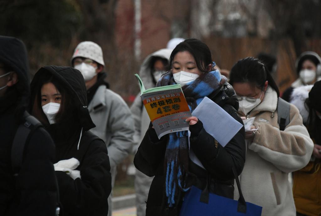 12月24日,在北京外國語大學考點,考生排隊準備進入考場。新華社記者 任超 攝