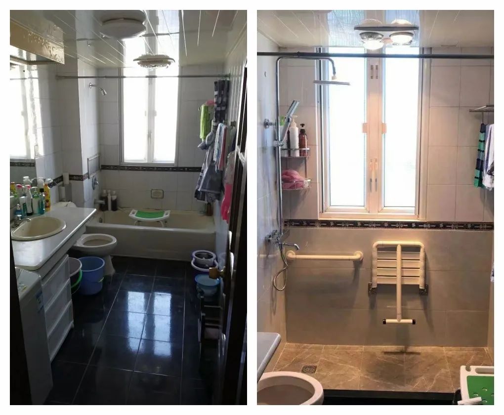 關掉花灑,勞阿婆拉開浴簾,順手翻下墻上的折疊椅坐了上去,再用毛巾擦了擦身體,隨后握住扶手緩緩起身,穩穩地走出浴室。經過適老化改造,洗浴從此不再讓勞阿婆每日“提心吊膽”了?!案脑熘暗牧茉》渴欠忾]型的,底下有一段約30公分高的地臺,由于離地落差大,每次跨進跨出總得萬分小心,就怕有什么閃失?!眲诎⑵诺呐畠合陌⒁谈嬖V記者,她們家的這間淋浴房使用至今超過20年,外觀早已斑駁,玻璃移門也出現了不同程度的松動,開合也不像早前那么順暢,使用起來十分不便?!斑@次改造拆除了原先的地臺,重新安裝了高度較低的擋水,這樣一來,老人家洗澡、上廁所,就再也不用擔心摔倒或是滑倒了?!?/p>