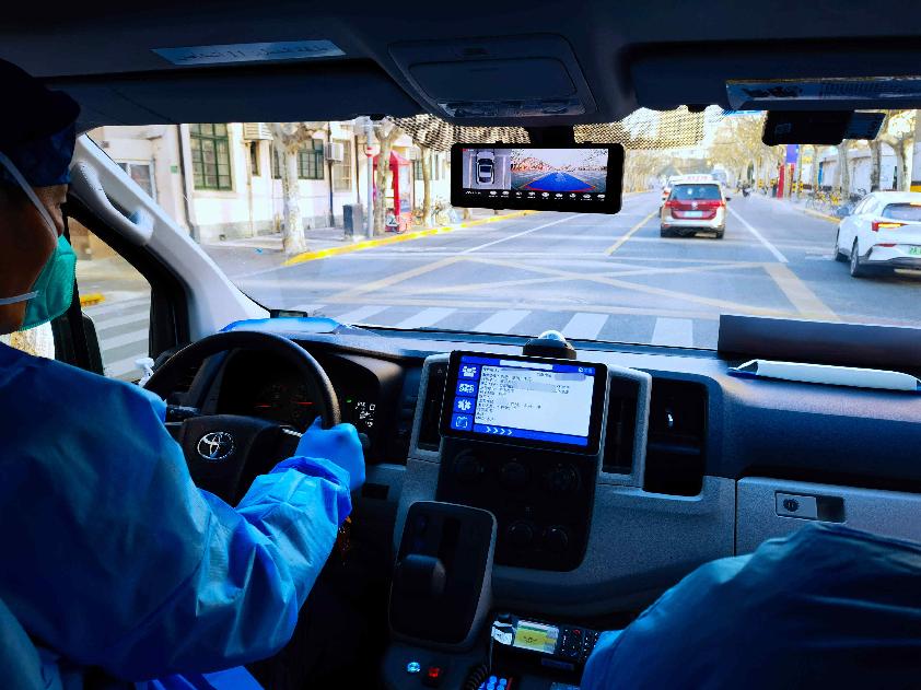 8點25分,患者已被安置在急救車內,氧氣、心電監護全部啟用,在趕往中山醫院急診中心的途中,隨車家屬告訴記者,從打電話到救護車到達,雖然比平時慢些,但這是疫情高峰期,他們對急救人員表示理解和感激。