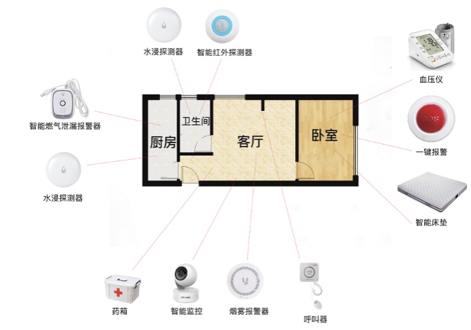 除此之外,智能手環、跌倒報警終端、活動監測終端和滯留監測終端等設備,聯同上述所提的其他家用硬件設施,可共同為老人打造出一個“普惠、全域覆蓋、實用有效、快速便捷”的幸福居家養老場景。