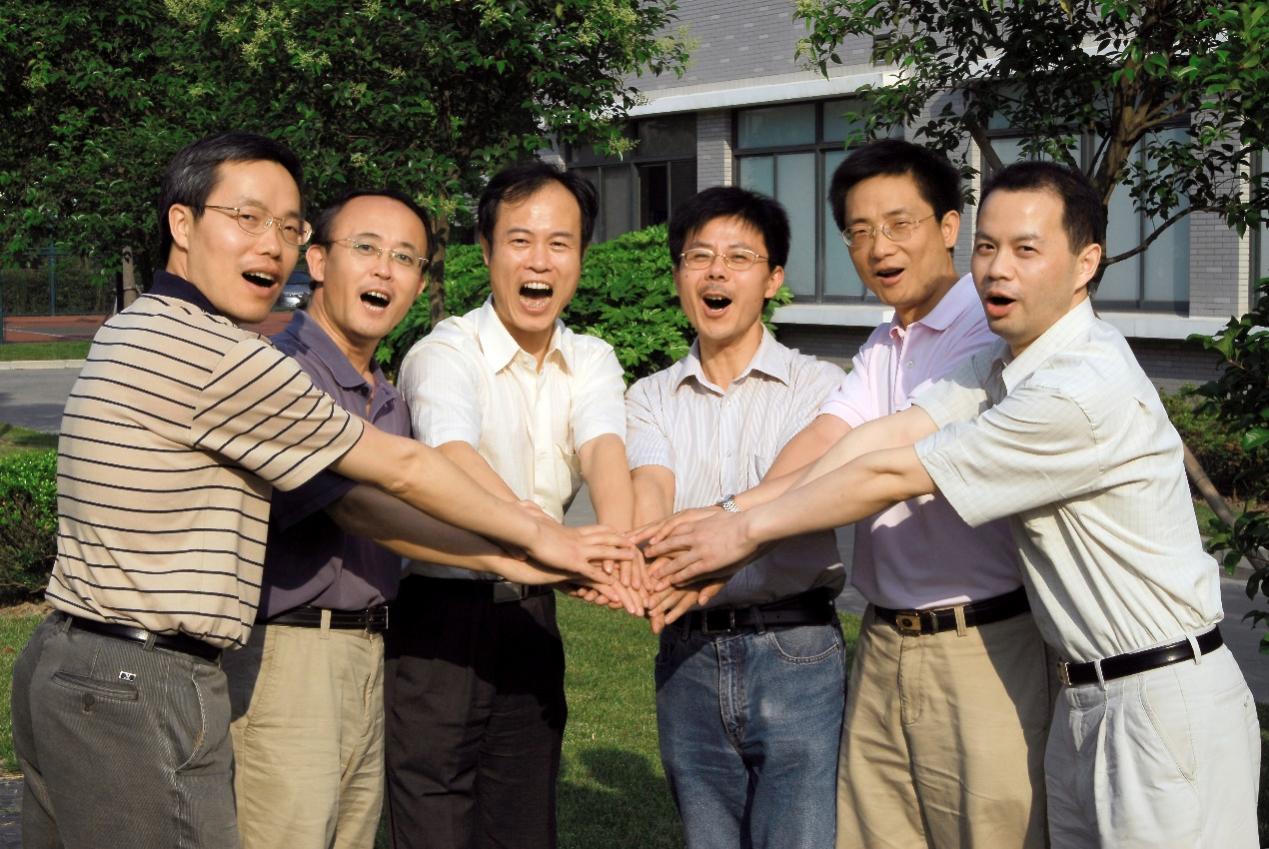 蔣華良(左三)和同事。中科院上海藥物所供圖。