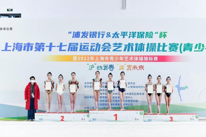 在藝術體操賽場上,由普陀區運動員張靖琰、陳書堯、徐心淼組成的參賽隊伍,伴隨著曼妙的比賽音樂,用輕盈的舞姿完成每一個動作,盡情展示著自己的肢體韻律美和藝術表現力,順利獲得B組個人團體冠軍,為普陀區體育代表團收獲1枚金牌。這幾位運動小將均來自優藝美青少年體育俱樂部,這枚金牌也是合作辦訓俱樂部運動員為普陀區體育代表團在本屆市運會上收獲的第18枚金牌。