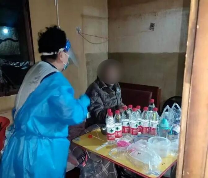 同樣住在泗塘一村的李伯伯常常獨來獨往,監護人生病住院,近期無法來照看李伯伯。泗塘居委志愿者迅速上門,了解李伯伯的生活狀況,給他做了抗原了解身體情況,并安撫好他的情緒,同時細心叮囑李伯伯注意防護,減少出門,有事就聯系志愿者或者居委。