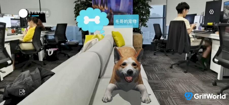 未來,在粒界科技,每個員工都可以領養一只虛擬寵物。打開手機,就能喂養對著你搖尾撒歡的小狗。也可以在辦公室玩轉籃球,一展三步上籃英姿。