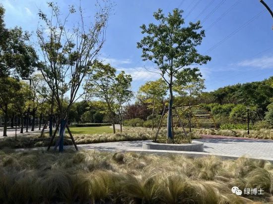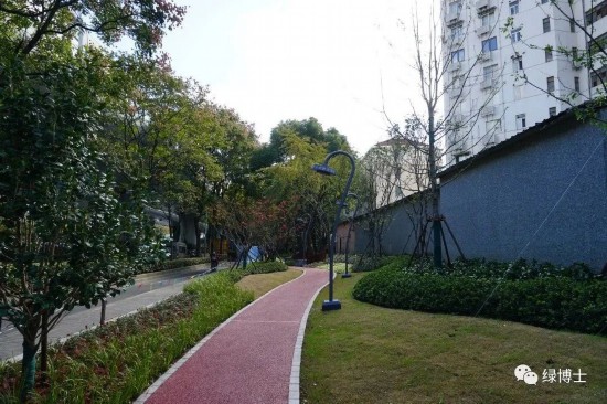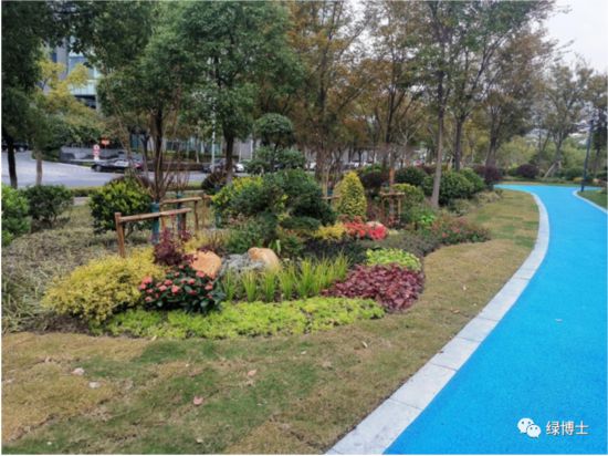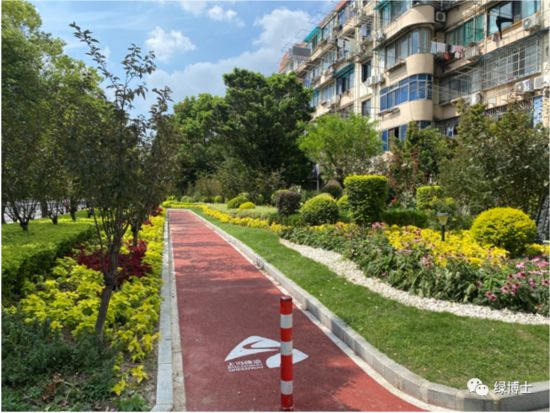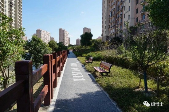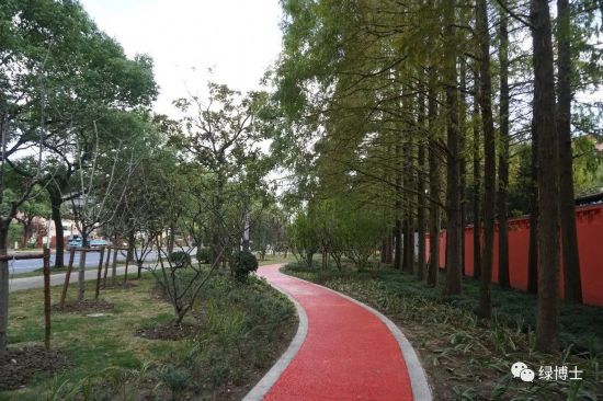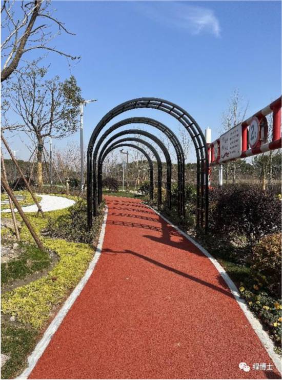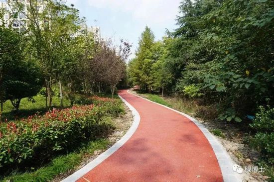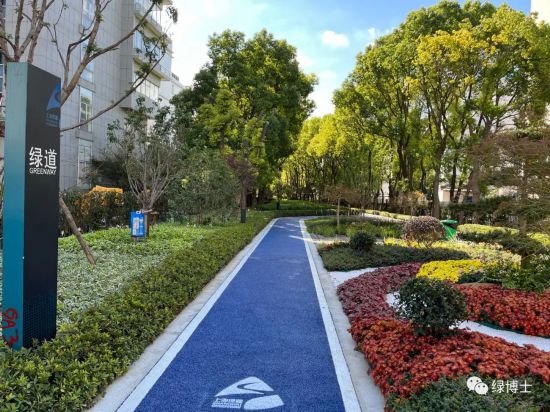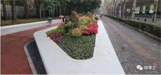 綠道依托林地或美麗街區等改造而建,配套座椅、廊架、標識標牌等相關設施設備,完善了綠道功能,并且根據不同立地類型進行植物配置,如滬杭公路綠道兩側種植了冬紅海棠、美人梅、美國紫薇等花灌木,綠地的景觀效果明顯提升。