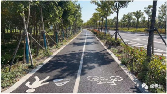 通過新建綠道銜接以往綠道,延續整體綠道風格。新建綠道貫穿路口公共綠地,有效打開市民近綠、親綠路徑。并且利用道路現有綠化帶打造蜿蜒、穿插的城市慢行系統。