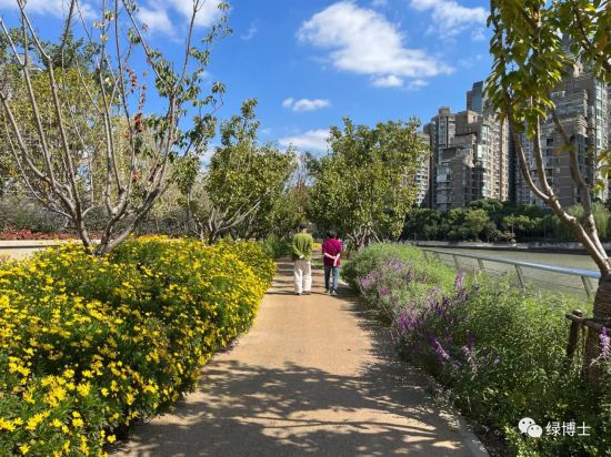 2022年靜安區依托新建鐵路公園項目、市北輕工綠地建設項目以及廣中路(北寶興路-共和新路)景觀提升改造項目新建綠道3條,共計長度2.66公里。本次新建綠道貫徹“以人為本”思想,堅持生態設計原則,因地制宜,運用大量四化新優植物,營造出中心城區舒適宜人的綠道景觀。