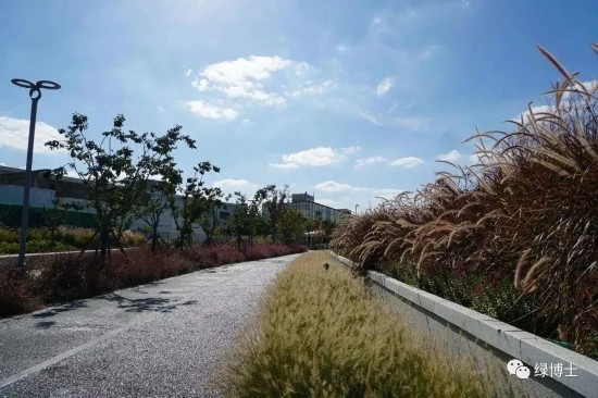 長寧區本年新建延安西路綠道 (虹許路-滬青平)一條,長度1.1公里。該綠道建設根據實地日照情況,配置了玉簪、細莖針茅等植物,并進行帶狀、片狀種植,形成路旁林下獨特的季節性植物景觀。該綠道沿馬路而建,同時也提升了沿線道路整體景觀。