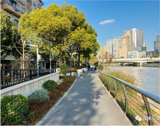 2022年普陀區新建蘇州河綠道(寶成橋-大渡河路)、蘇州河綠道(老真北路-千陽南路)和真北路綠道(金鼎路-寶山區界)三處綠道,共計長度8.37公里。通過本年度綠道建設,進一步構筑了普陀區綠色慢行系統,并為市級綠道的貫通性打好基礎;同時通過對老綠地的調整改造、更新優化,進一步提升了綠道的景觀面貌和服務功能。