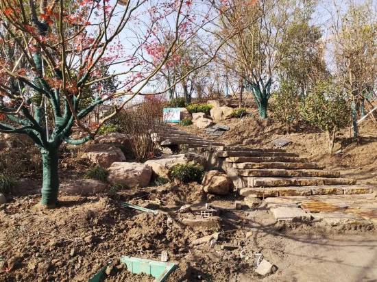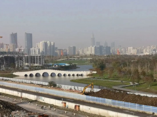 目前,雙子山已現雛形。沿著蜿蜒的山路盤旋而上,世博文化公園北區的景色盡收眼底