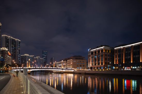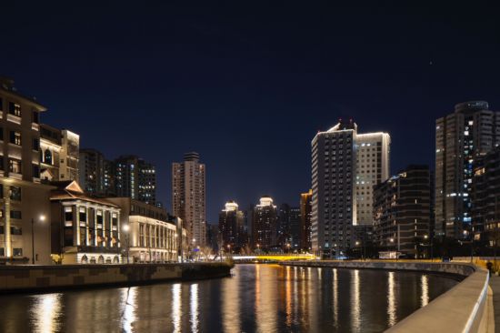 夜晚行走在蘇州河靜安段沿岸,從沿途夜景中,既能領略眾多歷史建筑的厚重感,又能夠感受林立的現代化高樓大廈帶來的震撼。新老建筑在燈光下交相輝映,和諧統一,都市的人文底蘊和經濟繁華在蘇州河兩岸得以一同彰顯。
