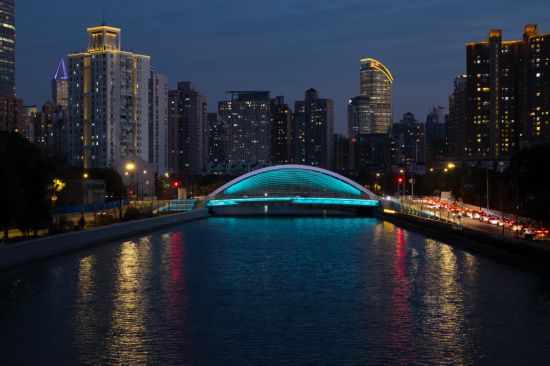項目通過局部點綴色彩動態效果,支持整體統一色溫的控制、智能照明系統的一體化控制,實現了整個蘇河靜安路段的照明體系既各具特色,又和諧統一的效果。