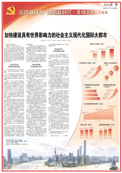 襟江面海的上海,貫徹新發展理念,加快高質量發展,國際經濟、金融、貿易、航運中心基本建成,國際科創中心形成基本框架,城市能級和核心競爭力顯著提升。