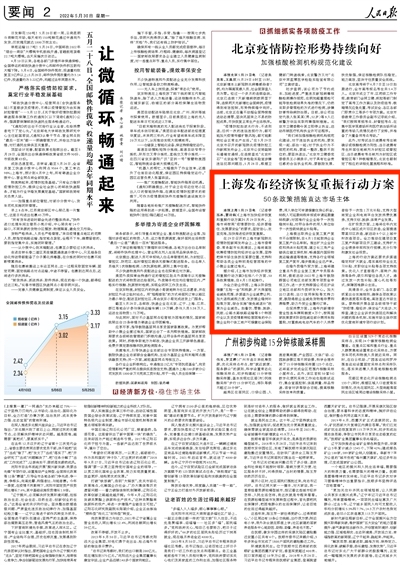 《上海市加快經濟恢復和重振行動方案》5月29日發布。上海市將按照“疫情要防住、經濟要穩住、發展要安全”的要求,堅定信心、攻堅克難,加快推進經濟恢復重振。