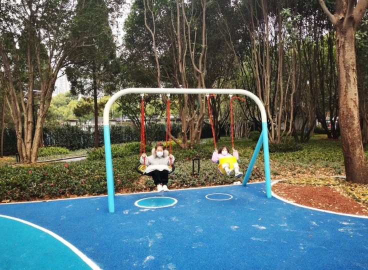 涇西綠地旁邊有一所小學和一座幼兒園,因此專門設置了家長等候區和兒童活動區,既能為家長遮陽避暑、擋風遮雨,又能規范校園周邊秩序。黃阿姨的孫子就在這所幼兒園讀大班,綠地改造后新增的秋千、沙地等,成為他玩耍的好去處。而保留的古式涼亭和健身器材,則讓黃阿姨也有了自己的活動休憩空間。