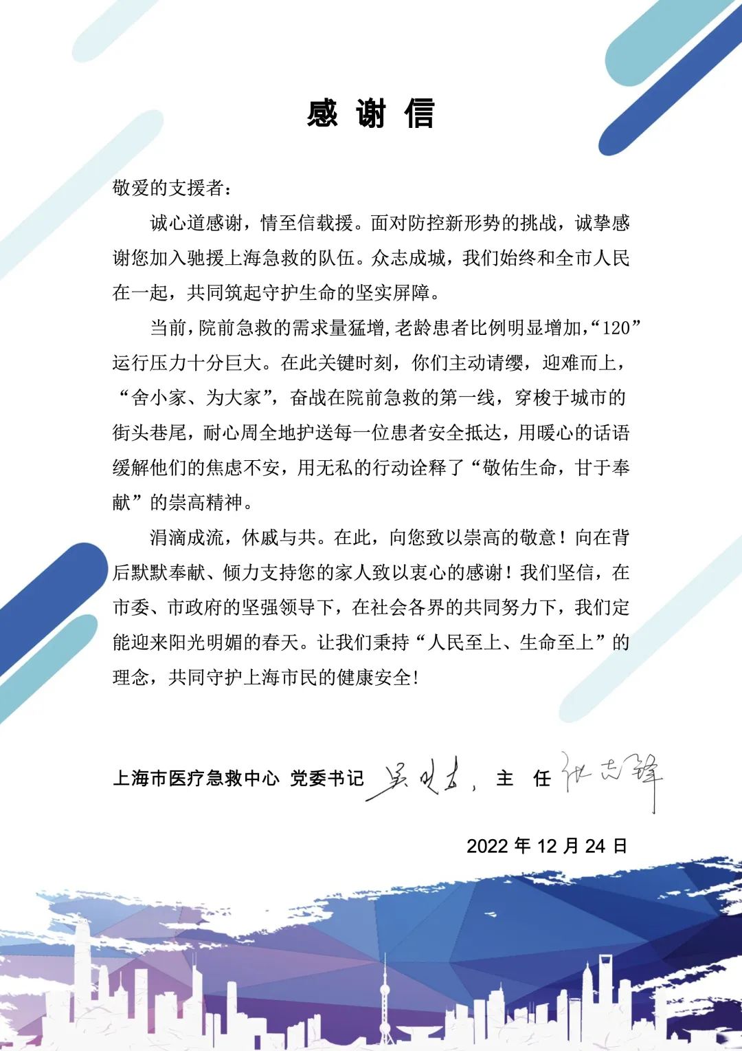 近日,上海市第一康復醫院積極響應上海市衛健委擴容急救隊伍的號召,選派醫務科醫生劉旎、骨康復一科醫生謝偉、神經康復一科醫生王鳳爽三人前往上海市急救中心支援。最近,一份來自上海市醫療急救中心的感謝信,讓更多人看到了那個生死時速的戰場……