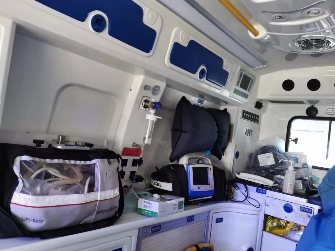 王鳳爽到市120參與支援的第一個夜班,便“驚心動魄”?!澳行?,94歲,昏迷,情況危重,抗原陽性,家屬要求送中山”,急救車的呼叫器里傳來了總臺的指令。王鳳爽、司機老鄭和同組的兩名擔架員,開啟了生命救援之旅:5分鐘達到預報地點,初步判斷患者“腦卒中新發”,需要立即送院治療。