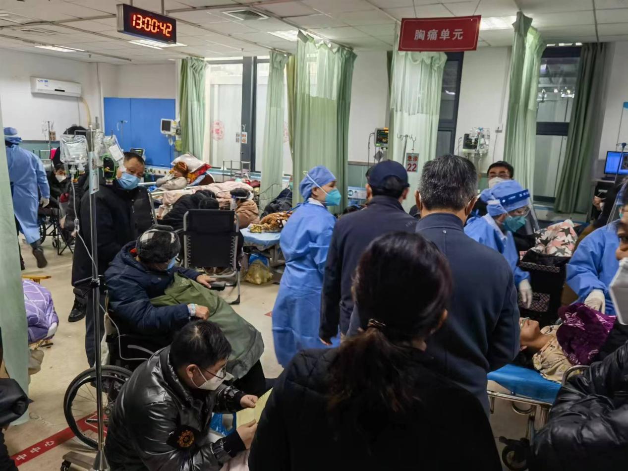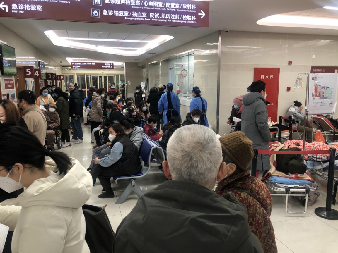 多家區中心醫院和三甲醫院相似,急診間人滿為患。經相關專家實地研判,其實多數病人可以留在社區治療。但是,二三級醫院極為擁擠,新到的患者連站都沒地方站,所有角角落落都遍布正在輸液的病患。一位醫生憂慮地說,“這么高的病毒載量,還可能有其他病菌和病毒交叉感染,本來病人都很虛弱了,如此就醫環境,對他們太不友好?!?/p>