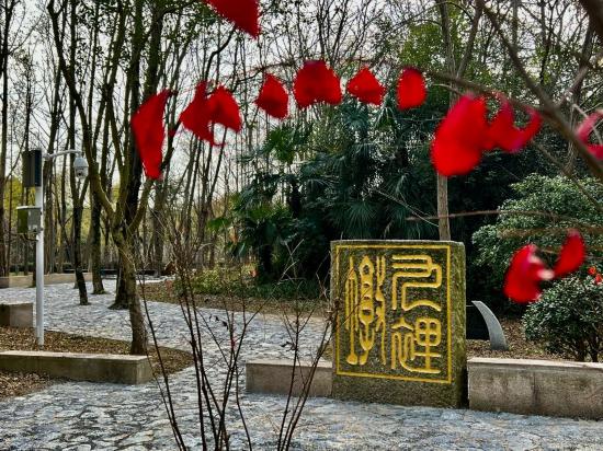 公園南側有一處秦家店烽墩遺址,又稱九里墩,始建于南宋建炎三年(1129年),是韓世忠駐軍江灣時修筑。烽墩遺址的存在是作為記錄上海古代海防線歷史文化的重要痕跡。公園提升充分利用原有遺址空間,打造傳承歷史駐守海防精神的紀念性空間,營造水流往復、星探懷古的景觀效果。入口空間增設敘述故事的景石,強化入口空間標識性。設置林下條石坐凳等基礎設施,滿足駐足休憩的功能需求。