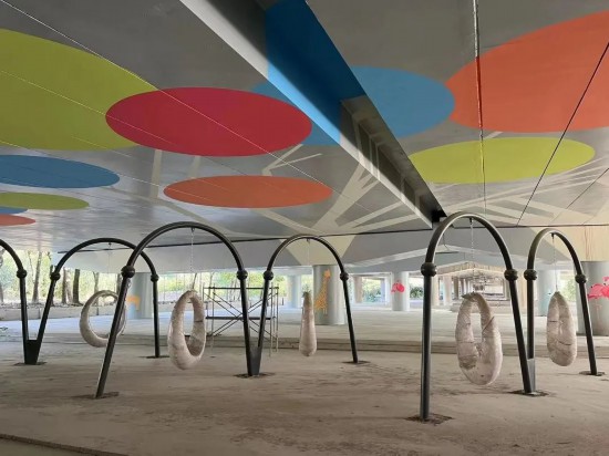 “五彩繽紛的橋下空間”——點亮豐翔路橋下黑暗空間打造“豐翔童空間”,將嘈雜陰暗的橋下空間轉變為具有鮮明色調與童真彩繪圖案的主題樂園,加入運動健身、休憩空間、親子娛樂等功能,為橋下空間賦予新的價值與用途,也為公園賦予更多的參與性。