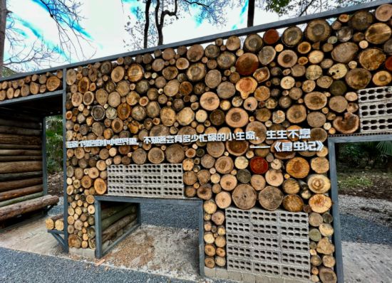 “變廢為寶的昆蟲之家”——公園內的昆蟲之家是收集和利用場地的回收材料和自然廢棄物,樹皮、秸稈、竹、木頭、稻草、松果、木條等,實現公園廢料的循環利用,建造天然昆蟲活體展館,增加科普體驗。